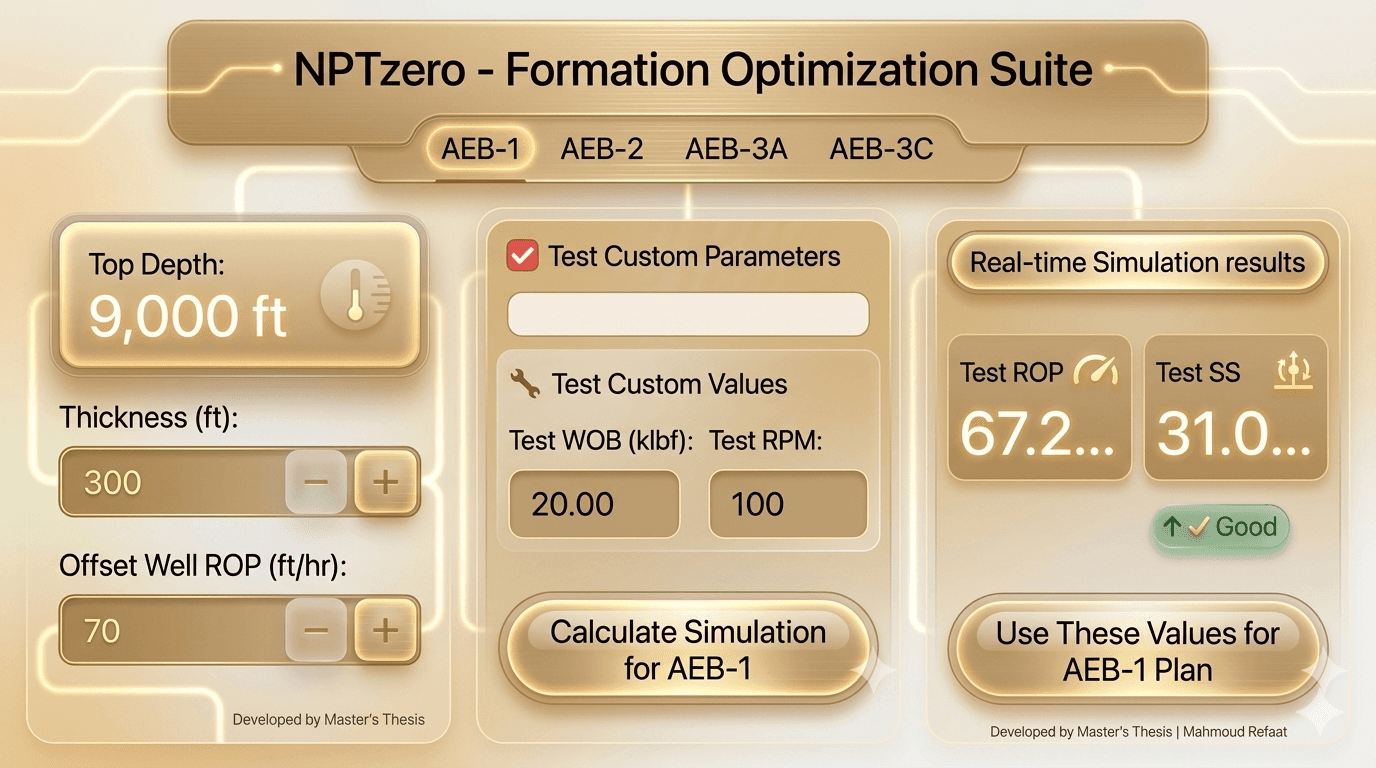 Optimized RPM/WOB setpoints for every layer from AEB-1 to Masajid